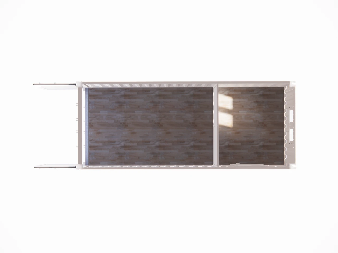 Base : Container maritime 20 pieds dry dernier voyage. Structure, parois et portes en acier Corten. Intégrité structurelle et étanchéité garanties. Plancher bois marine de 28 mm d’épaisseur.
