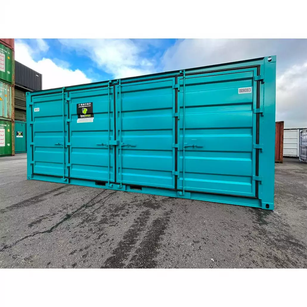 Le prix du container double Open Side 20 pieds varie en fonction de l’état du conteneur. Cependant, ce type de conteneur ne convient pas aux voyages longue distance contrairement aux conteneurs maritimes approuvés pour le transport. Il est moins lourd et donc moins résistant. De ce fait, le container 20 pieds permet de stocker tous types de matériel où vous le souhaitez. Box’innov transforme et aménage votre container.