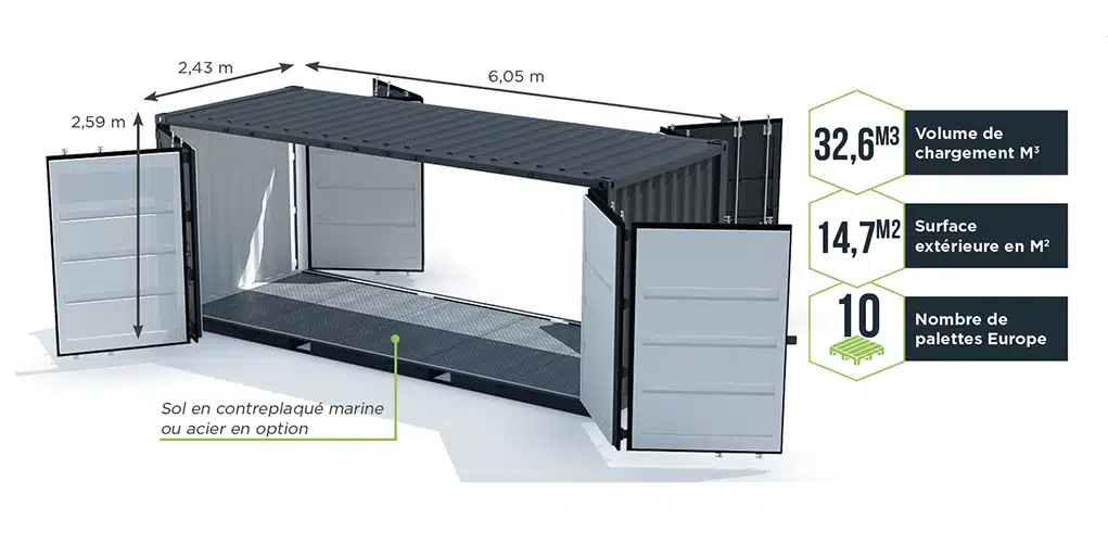 Les mesures d’un container 20 pieds double open side