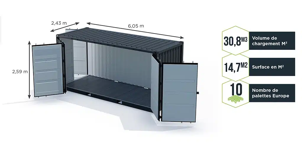 L’ouverture latérale d’un conteneur open side de 20 pieds permet de charger des objets jusqu’à 5,90 mètres de longueur. Cette ouverture facilite la manutention de marchandises ou d’équipements longs, rendant ce conteneur particulièrement adapté aux besoins des secteurs de l’aéronautique, de la défense et de la construction. Par ailleurs, son équivalent, le conteneur open top de 20 ou 40 pieds, dispose d’une ouverture sur le toit facilitant également le chargement.