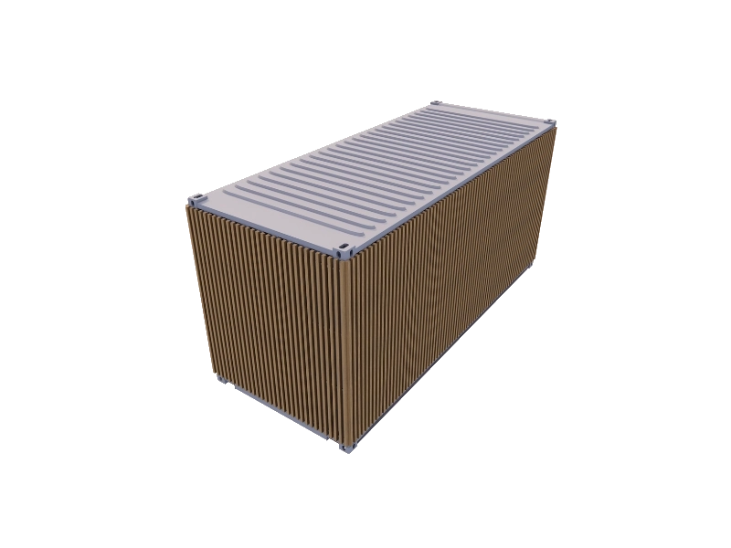 Base : Container maritime 20 pieds dry dernier voyage. Structure, parois et portes en acier Corten. Intégrité structurelle et étanchéité garanties. Plancher bois marine de 28 mm d’épaisseur.